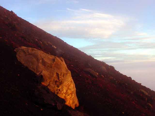 ご来光を見た一向は、瓦礫の道を下山しはじめました。 5:26