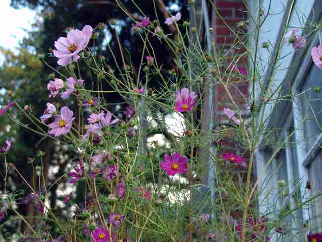 今年は台風の風に乗って海水がかかり、コスモスもカエデも枯れているものが多い。